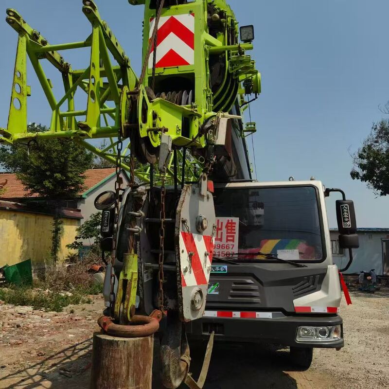 Zoomlion ZJL5332JQZ25E 중고용 트럭 크레인, 25톤의 부하량, 최대 허용 총량 32800kg.높은 작업 현장 가시성을 위해 브랜드 녹색 외관.